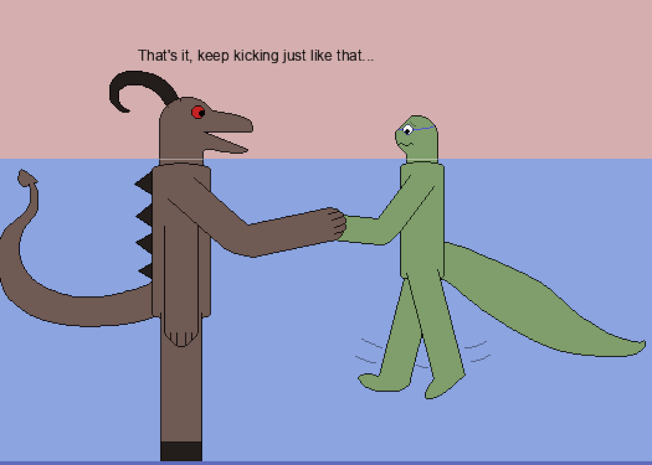 "R-right, sorry." The lizard gathered up his confidence, and continued more formally. "I apologize if this summoning has interrupted or bothered you, though what I request will likely not be difficult for you to fulfill. I require you to..." His confidence faltered again; this was going to be a strange thing to ask of a demon. "...T-teach me to swim."