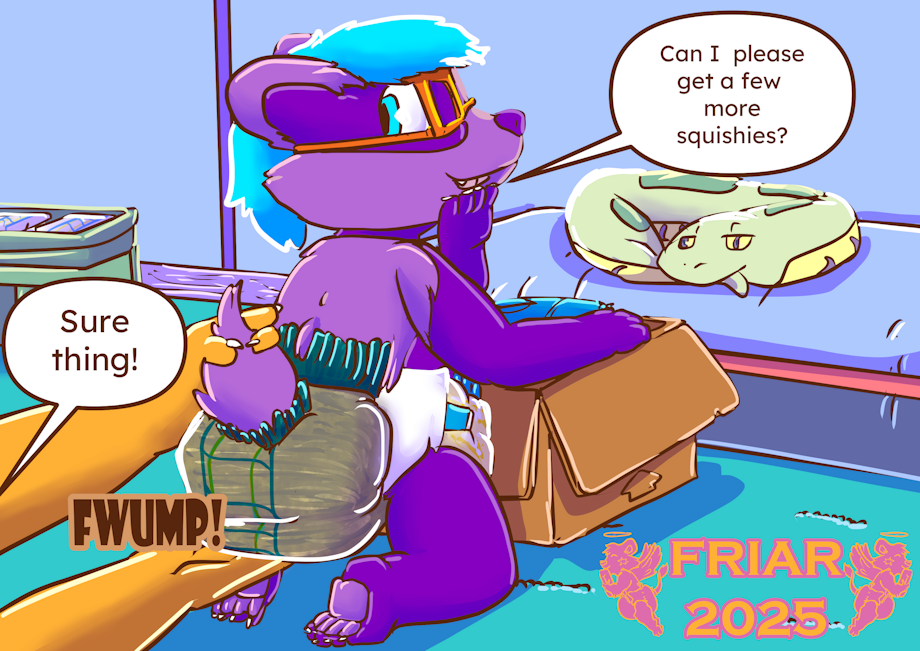 Illustration of Ozzy the wet and messy diapered two tailed fox pooping his diaper on the table at Taco Bell. A diaper and half eaten taco are on the table. "-MNNF- y'know I'm just going poopies, right? Tacos don't actually do anything to me."