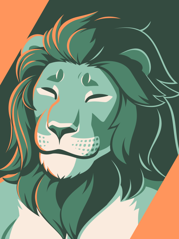 [A vector portrait of an anthro lion, drawn in flat colors: three shades of green, white, and bright orange]