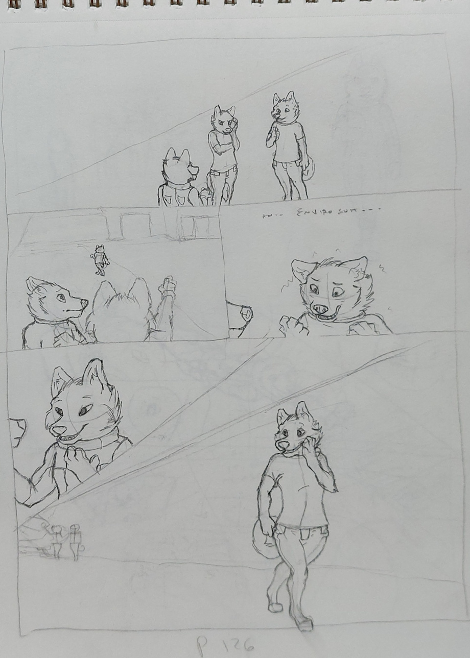 Husky is in full panic now! But why is he so scared? We will find out in the next two pages. Turns out Husky used to love working in the hangar area in Canis major. He loved Zero G and working in vacuum. Something made it change...
