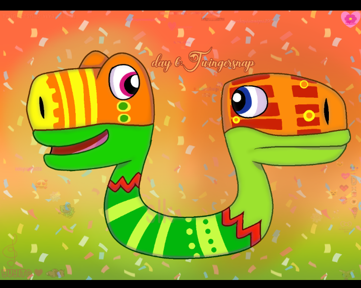 para este cuarto día de esta semana de sobre serpientes hoy le toca a esta extraña serpiente piñata de dos cabezas (que por alguna razón me recuerdan un poco a razzle y dazzle), osea hablo Twingersnap🐍.