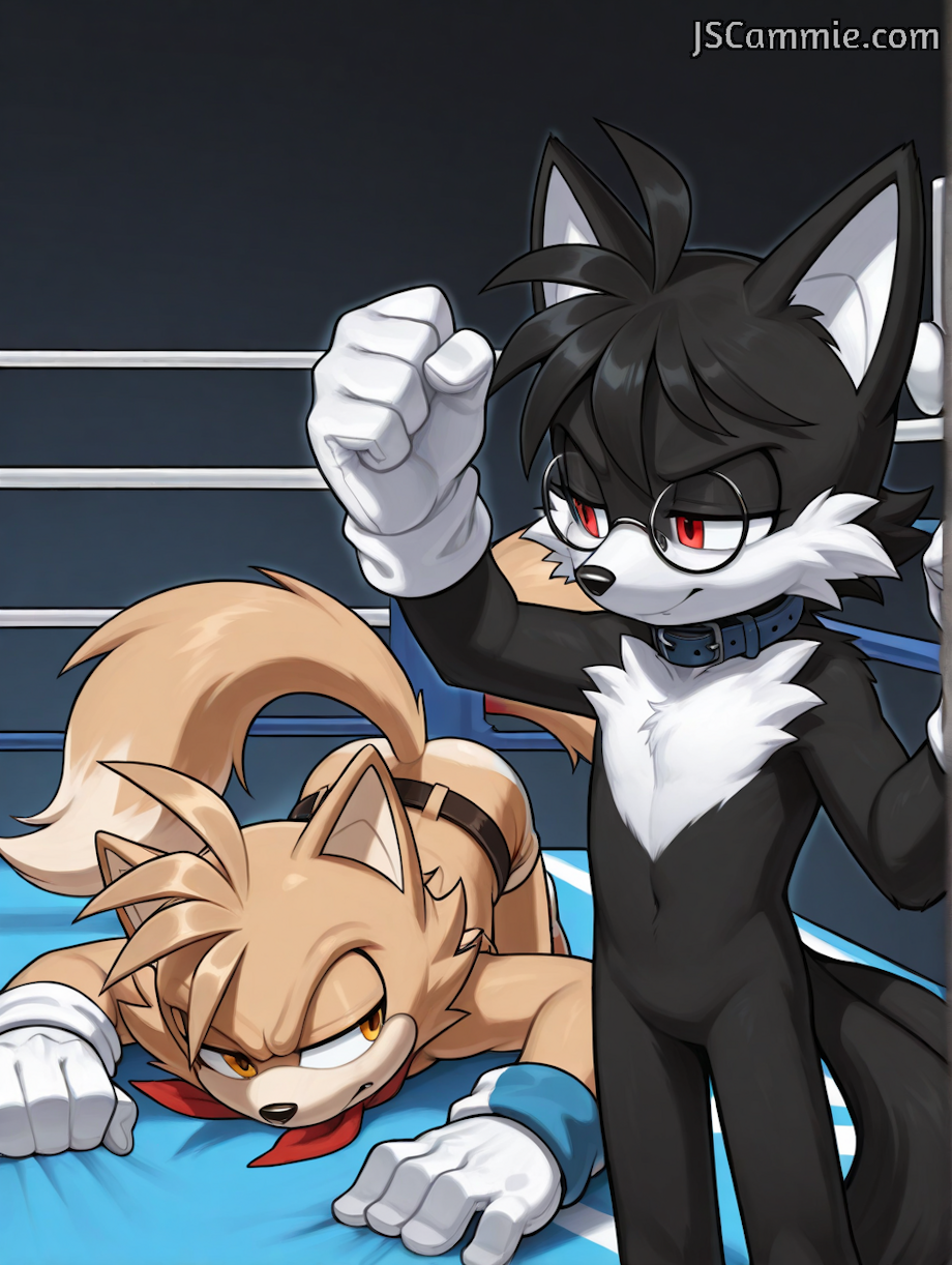 They asked for their OC, Ralph the wolf, having a sparring match with my boy, Chopper.