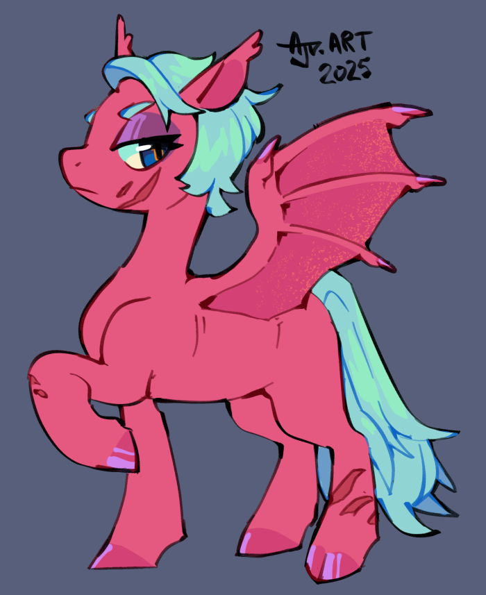 Glitter Bite, a tough adventurer bat pony who knows how to bite a knife. So you better WATCH OUT! She's after that treasure and nothing's gonna stop her! This adopt has been sold.