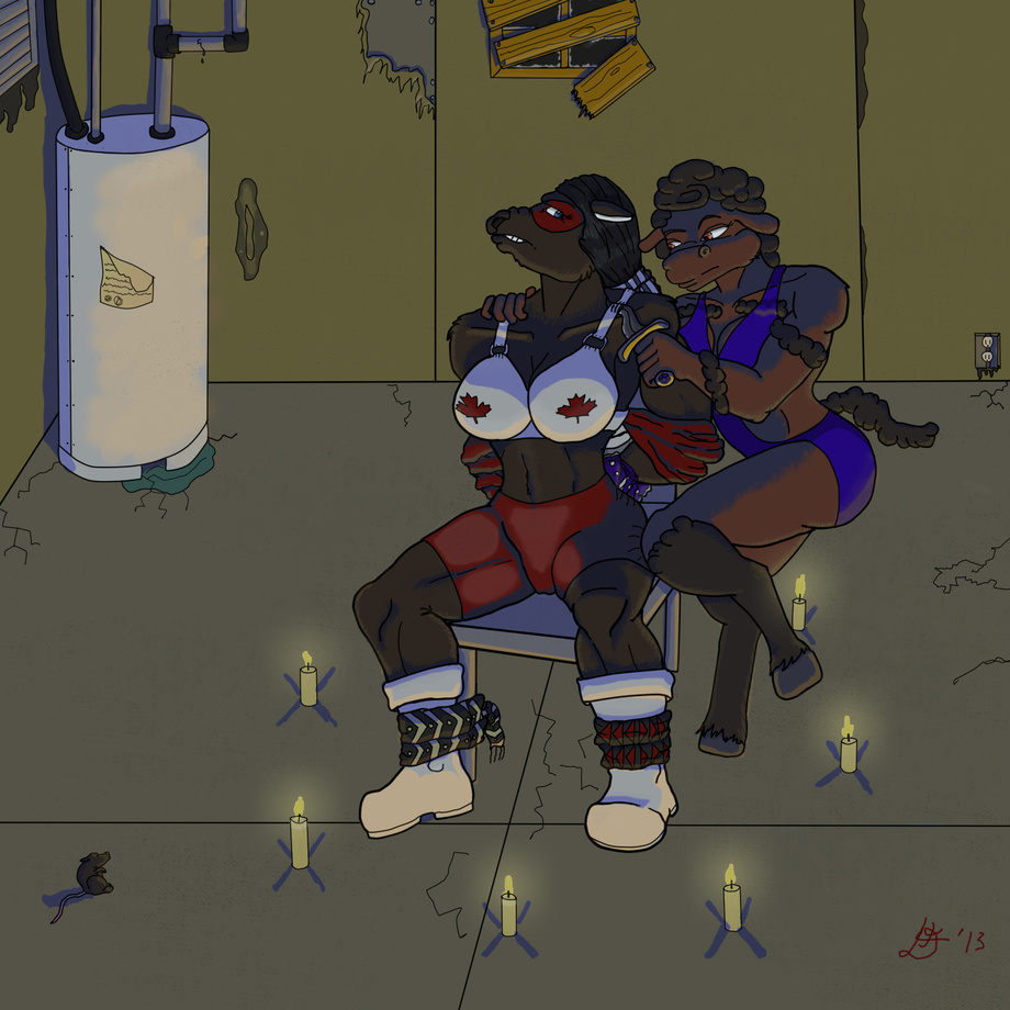 Lady Canuck did a lot of crime fighting lately. The Bakk family was angered so Alice proposed to get back at here. She hired Arcanus in exchange of help her to get her lawyer. Arcanus enchanted some arrowhead sash, symol of the Lower Canada rebellion and captured Lady Canuck. Now she intend to uses the moose bra as a offering for her goddess. This will sadly risk to allow help to come but it is life. Lady Canuck risk to be more busy hunting Arcanus to hurt Bakk family business.
