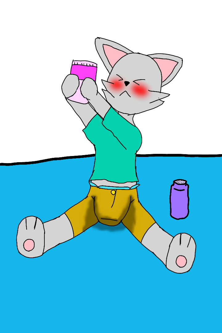 While this little one was playing, he didn't notice how he wet his diaper to the point of leaking, on the changing table he wants to put his sister's diapers on him.