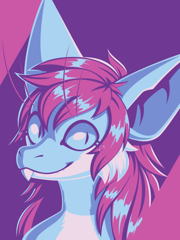[A vector portrait of a yinglet, drawn in flat colors: white, light blue, medium blue, purple, and pink]