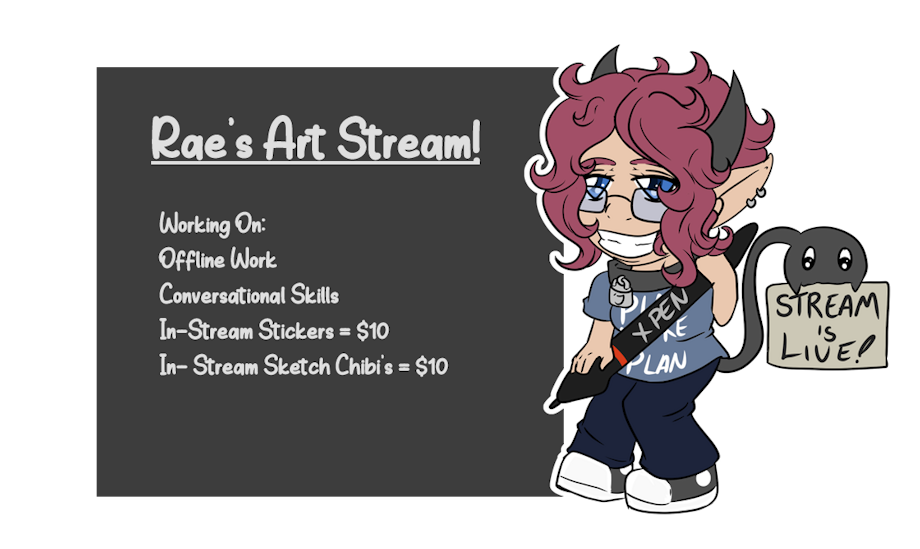 I will be primarily working on offline work just kind of chilling. But if you'd like a instream I'm offering limited options of the following: