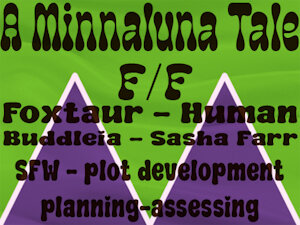 For several more long, silent moments Buddleia stared back into Sasha's eyes. Her ears flagged, dipped, pricked back up, her whiskers twitched as did the end of her bushy tail, her eyes slowly grew wider while her breathing slowed down but deepened. It took yet several more moments before the purple and white vixen-taur managed to open her mouth and speak up in a low voice that trembled slightly.