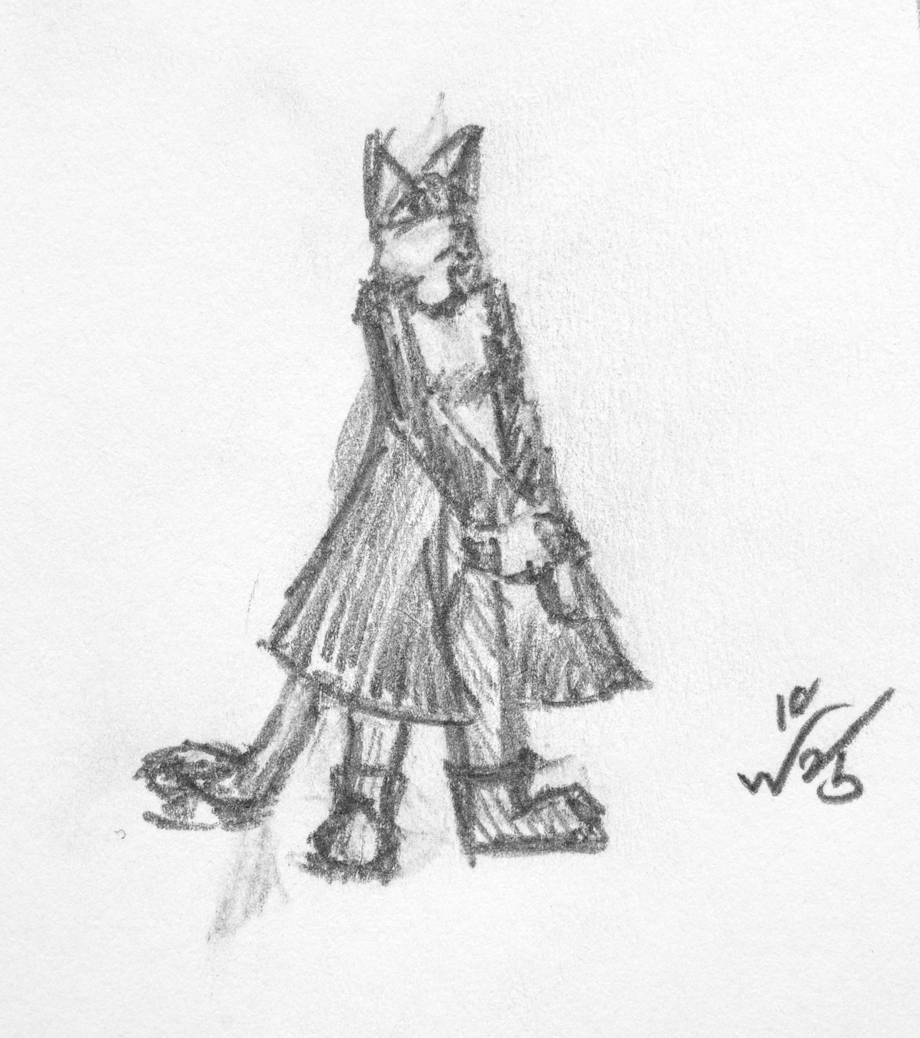 My brain was bitten with a bug for a cape-wearing cat holding a pistol, though the pose here was a bit more reserved than I'd wanted.