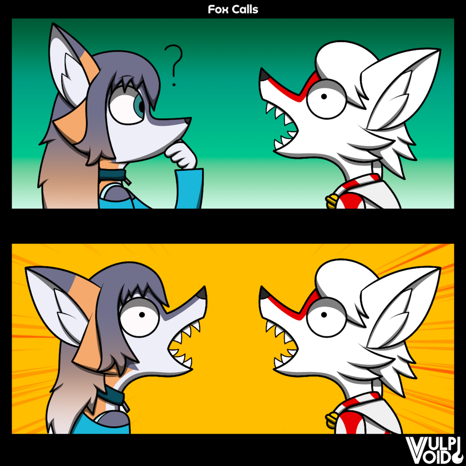 A Commission for Charged Commando over Discord who had the idea of playing off the screeching cackle almost every fox makes when communicating with each other, even though a Gray fox wouldn't make the exact cackle of a red fox.
