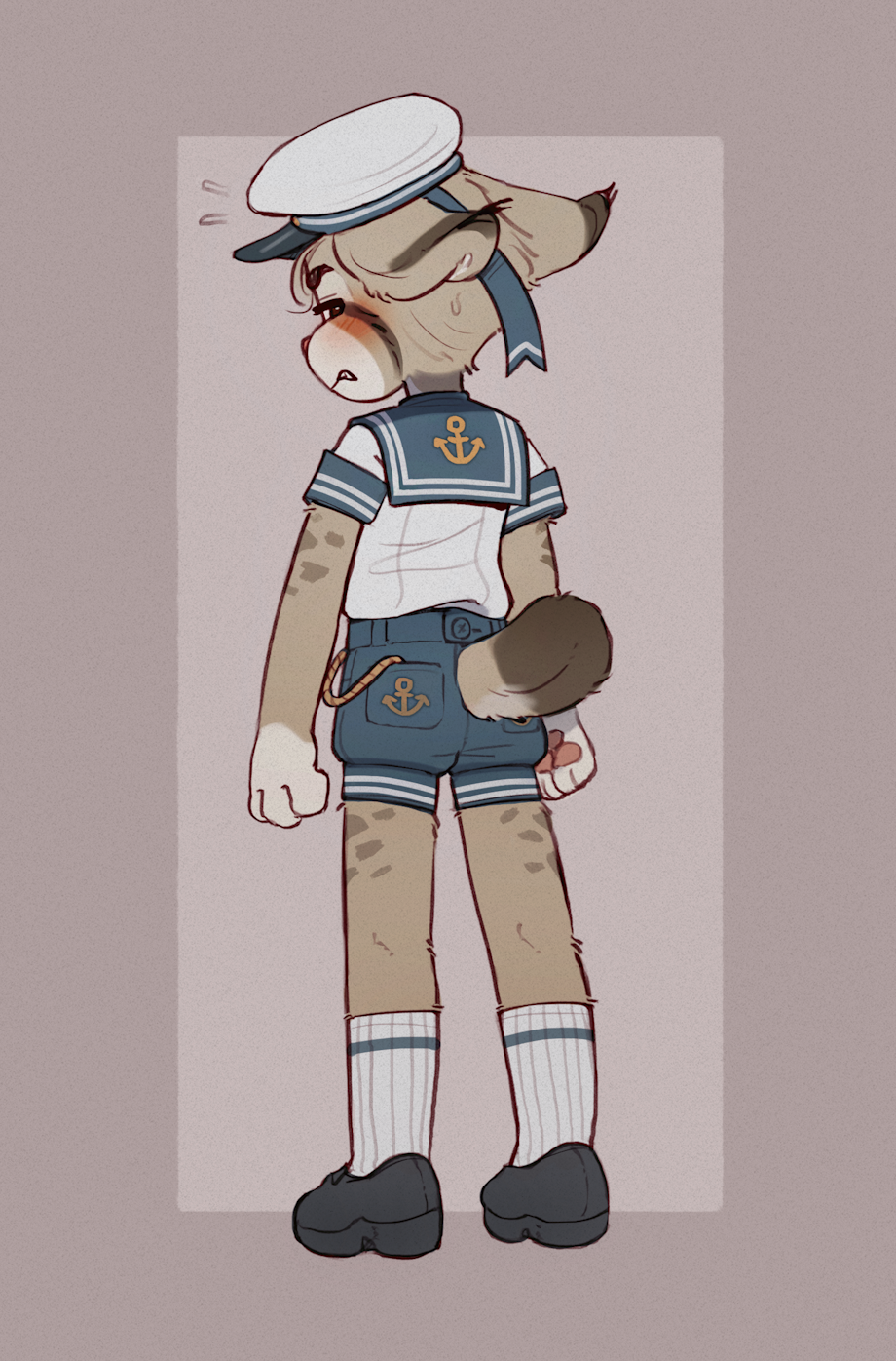 Wanted to draw the rear view of Minnow so we could see his cute butt the back design of the sailor suit. Sort of trying out the idea that anthro pants could have a button-up-fly like the front of normal pants to accommodate the tail.