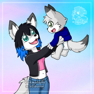 The first pic involving Dreg's mommy! She cares so much of her baby, they are very close and always play together with a big smile on their faces! Even after a nice diaper change! ^w^