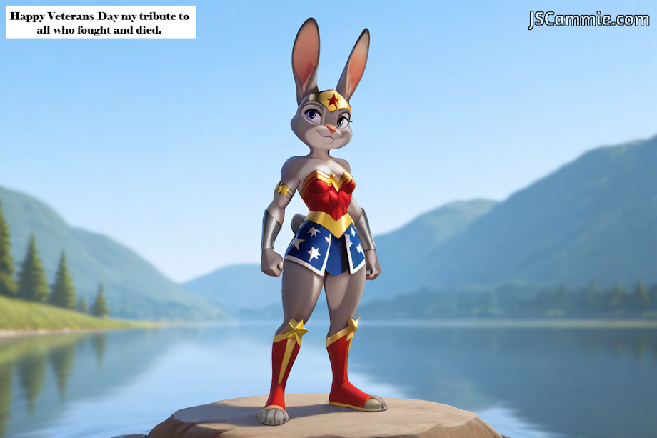 Prompt - Judy Hopps dressed as Wonder Woman, full body, lake, medium breast, J0t43m3G3