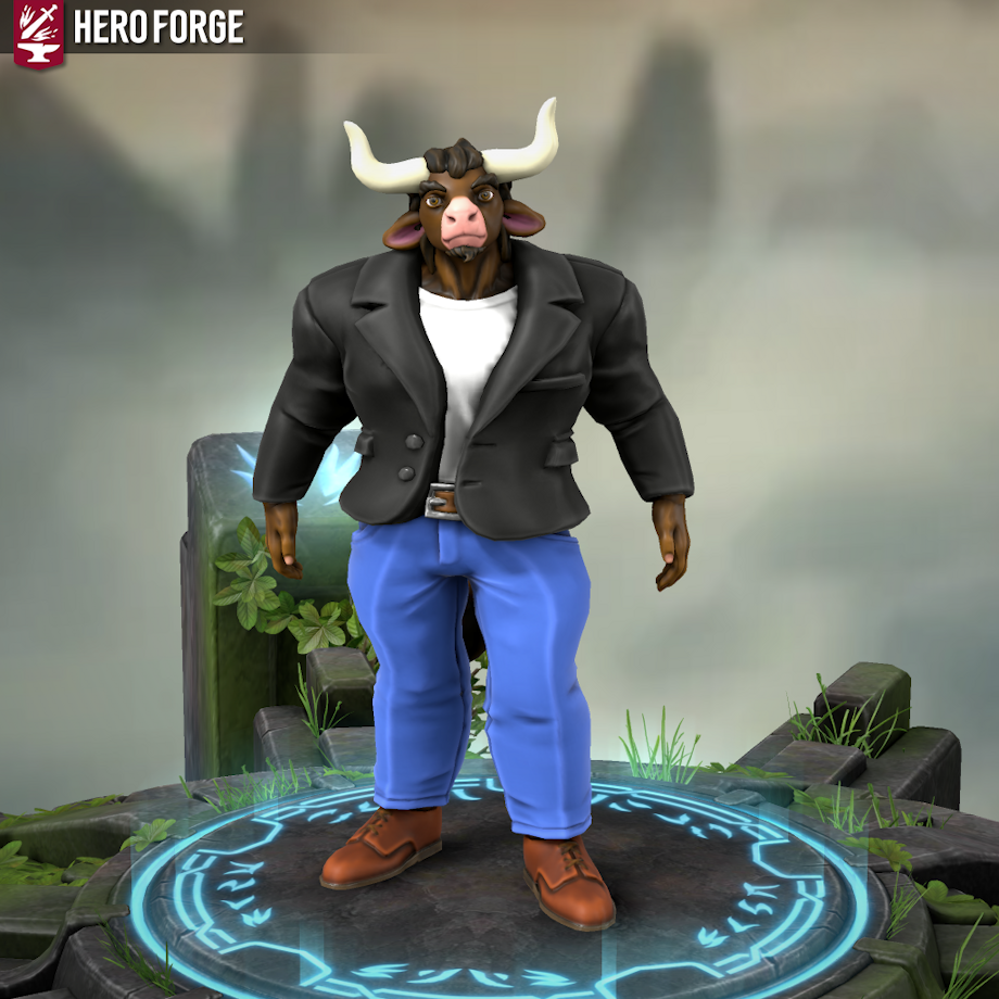 He is a muscular anthropomorphic bull. He love men, and he love pecs and heartbeat.