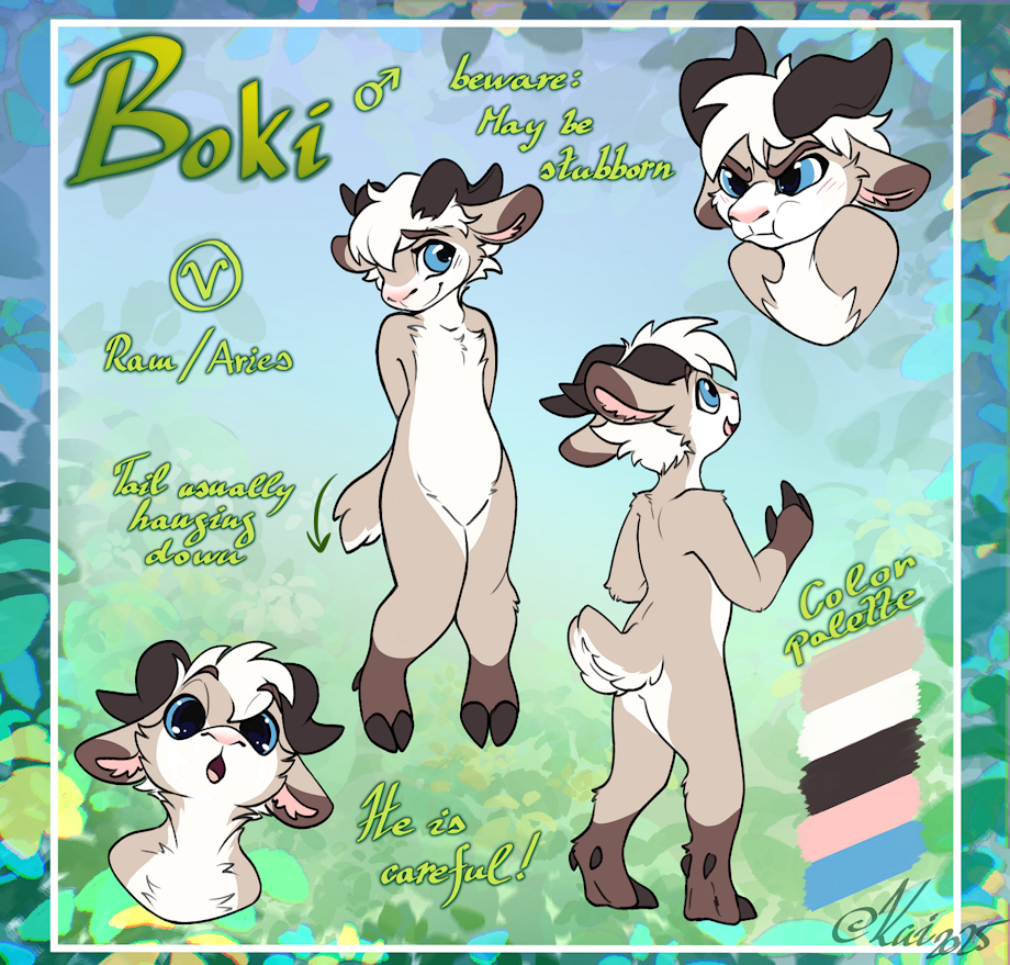 I'm a ram boy and this is my reference sheet. It was done by the brilliant and resourceful artist Kaisarion. Please check them out on this page or on X