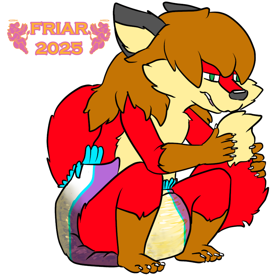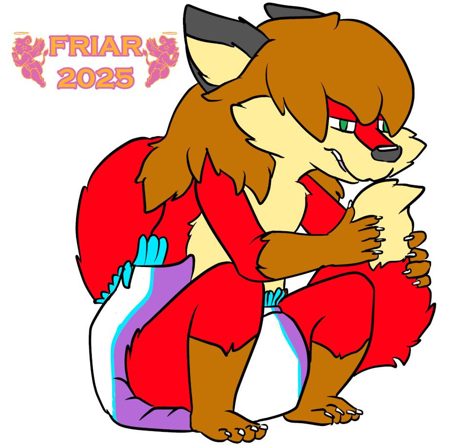 Illustration of Ozzy the wet and messy diapered two tailed fox crouched down and pooping his diaper while holding one of his tails in Everett's bedroom. "Heh heh heh, now it's MY turn to make yuckypants!"