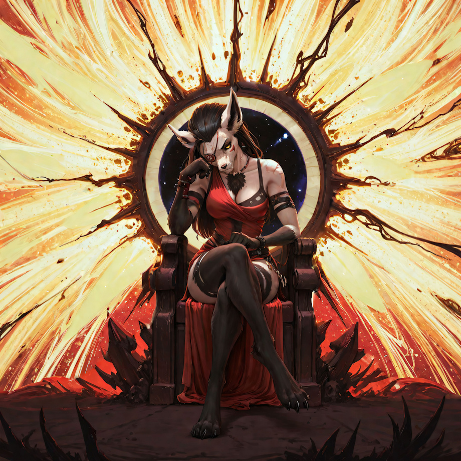 masterpiece, high quality, detailed fur, high detail, 4k, detailed background (red background:1.5) (1girl, solo, full body, sitting, throne, smoke leaning on side, background, spikes, legs crossed, resting head on one fist, bones, elegant, intricate, red tribal outfit:1.5) <lora:(1) FenrisXL Lighting:1> <lora:(1) Mjölnir (SDXL Lighting):1> <lora:photorealistic anthro 2:1> furry <k4r4mb1t> (female:anthro:mightyena:1.4) (yellow eyes with black pupils:1.2) (black sclera:1.3) (black hair:1.2) (widow's peak:1.3) (medium breasts:1.3) (athletic body:1.3) (black fur:1.6) (chest tuft, chest hair:1.6) (facial markings:1.4) (full eyelashes:1.4) (black stripes:1.4) (eyepatch:1.4) (scars:1.3) (face:scar:1.4) (bone:necklace:1.4) (fangs:1.3), (clothes:2) Negative prompt: bloodshot eyes, arms behind back, hands behind back, blurry, blurry background, bad anatomy, bad hands, three hands, three legs, bad arms, missing legs, missing arms, poorly drawn face, bad face, fused face, cloned face, worst face, three crus, extra crus, fused crus, worst feet, three feet, fused feet, fused thigh, three thigh, fused thigh, extra thigh, worst thigh, missing fingers, extra fingers, ugly fingers, long fingers, horn, realistic photo, extra eyes, huge eyes, 2girl, amputation, disconnected limbs, worst quality, normal quality, low quality, low res, blurry, text, watermark, logo, banner, extra digits, cropped, jpeg artifacts, signature, username, error, sketch ,duplicate, ugly, monochrome, horror, geometry, mutation, disgusting, jpeg artifacts, , NEGATIVE_HANDS ac_neg2 p0rnXL-neg DeepNegative_xl_v1 BeyondV3-neg, (nipples, nude, nudity:2) (erect nipples:2) (topless:2) Steps: 30, Sampler: DDIM, Schedule type: SGM Uniform, CFG scale: 3, Seed: 118800906, Size: 1024x1024, Model hash: 171e88f0da, Model: yiffymix_v62Noobxl, Denoising strength: 0.46, Mask blur: 4, Inpaint area: Only masked, Masked area padding: 32, Lora hashes: "(1) FenrisXL Lighting: c49df8024095, (1) Mjölnir (SDXL Lighting): 368d428918ac, photorealistic anthro 2: bed53d4c8b68", TI: "NEGATIVE_HANDS, ac_neg2, p0rnXL-neg, DeepNegative_xl_v1, NEGATIVE_HANDS, ac_neg2, p0rnXL-neg, DeepNegative_xl_v1", Version: f2.0.1v1.10.1-previous-224-g90019688 |