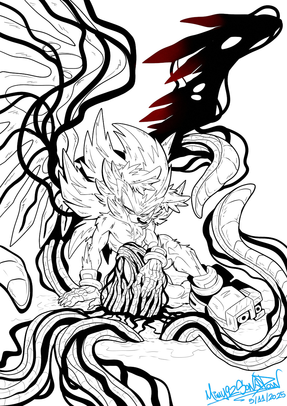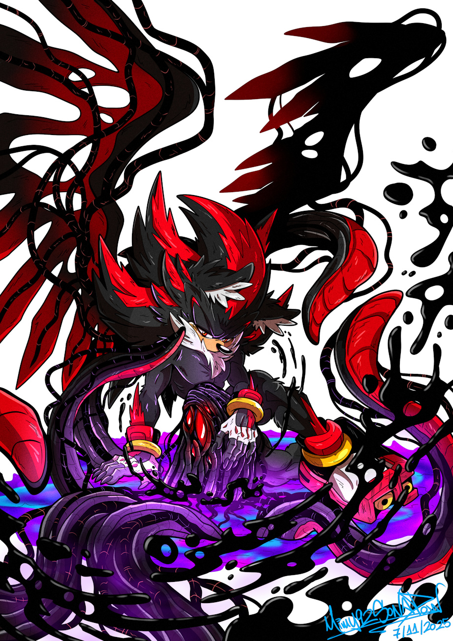 Un año atrás, dibujé un Shadow poderoso, oscuro e intimidante, basándome en uno de sus poderes en Shadow Generations y en esta misma canción, que en su momento no terminé de entender. Creía que, al igual que este personaje, la oscuridad era algo que debía dominar, o en su defecto, esconder.
