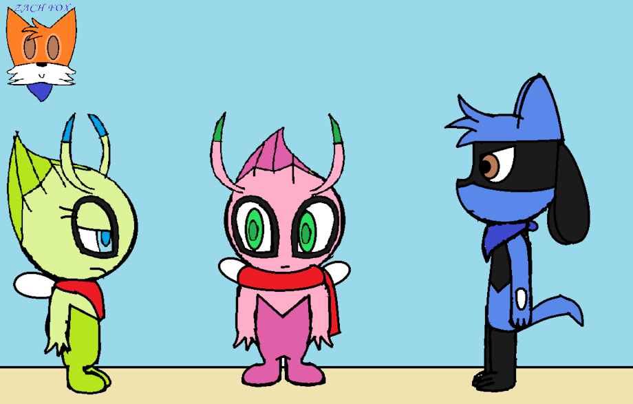 “Hey, Sis!” Appearing out from the tavern door is the regular celebi. “How long is your boyfriend going to be?! We-” She freezes and turns to surprise upon seeing the riolu before her. “Elle…” She points to Zach. “What is he doing here?”
