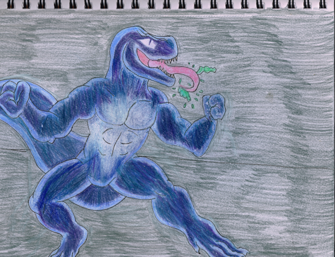 It's my fursona Saur possessed by the Venom symbiote. This one took way too long for me to finally finish, the pose was based off someone's fanart of the Spider-Man Animated Series venom while the colors are loosely inspired by his blue coloration in the PS1 game.