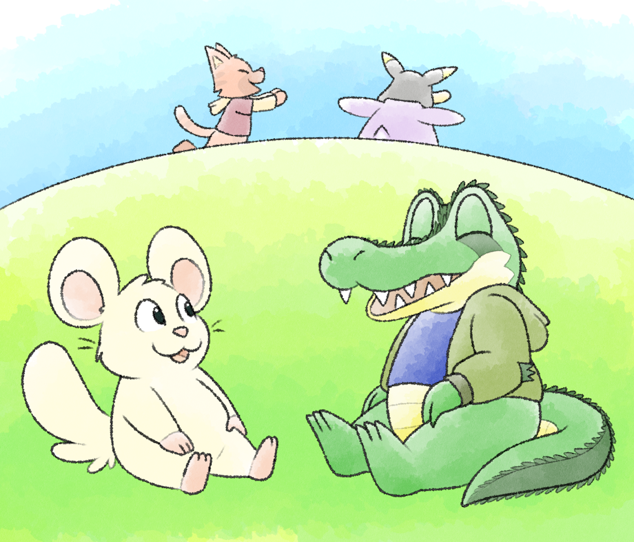 Our crocodilian buddy has a birthday today! It's fun when our little group all hangs out together, and he does a good job helping others feel understood. :3 Happy Birthday Crocpot!
