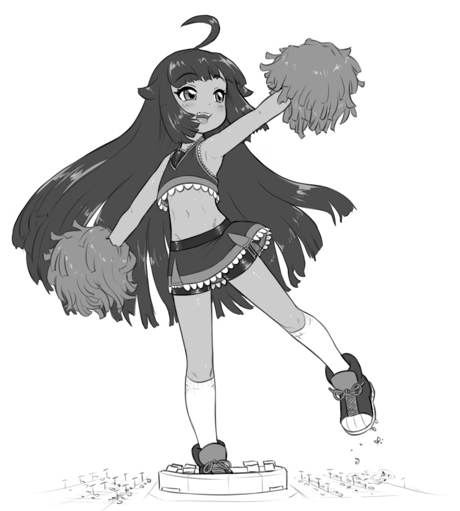 I always say that Truffle's cheerleading outfits works on just about anyone. they're always fun combinations of clothing and character. Quite a nice size. She missed the stadium walls, but I do like the idea of her shoe being so huge it crunched half of one parking lot~ Very nice work here.