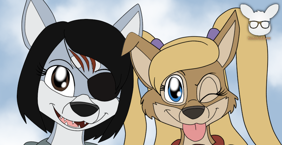 My air pirate girls, Zephyr the coyote and Yoko the akita, are the best of friends!