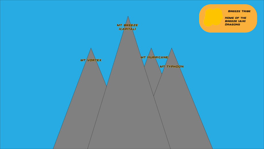 Located on Air Isle, consists of high mountains that the Breeze dragons call home, with four temples on the tallest of mountains where their cities are built. Their region lies to the southeast of the planet, where the air currents are strongest.