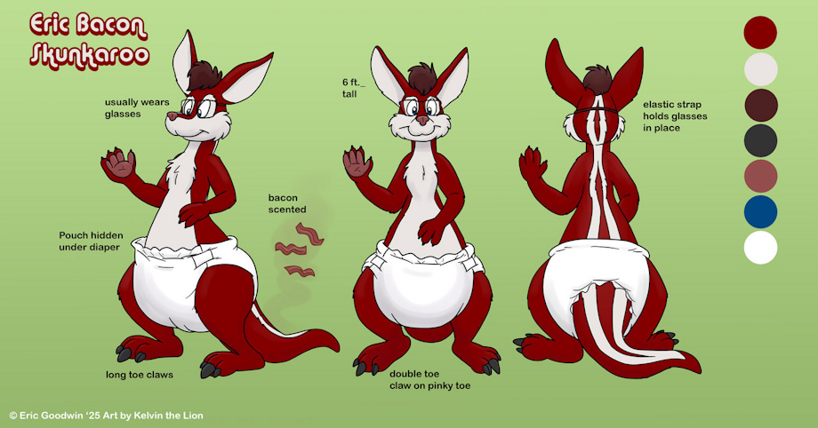 Eter Eric RooSkunk or SkunkARoo! I had a few make prototypes a few years back, and Kelvin took his twist on those in a comic a whole back. But now, this is the official v1.0 ref sheet of the hybrid! Expect to see more of this form. 😊