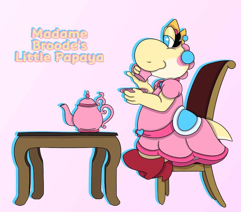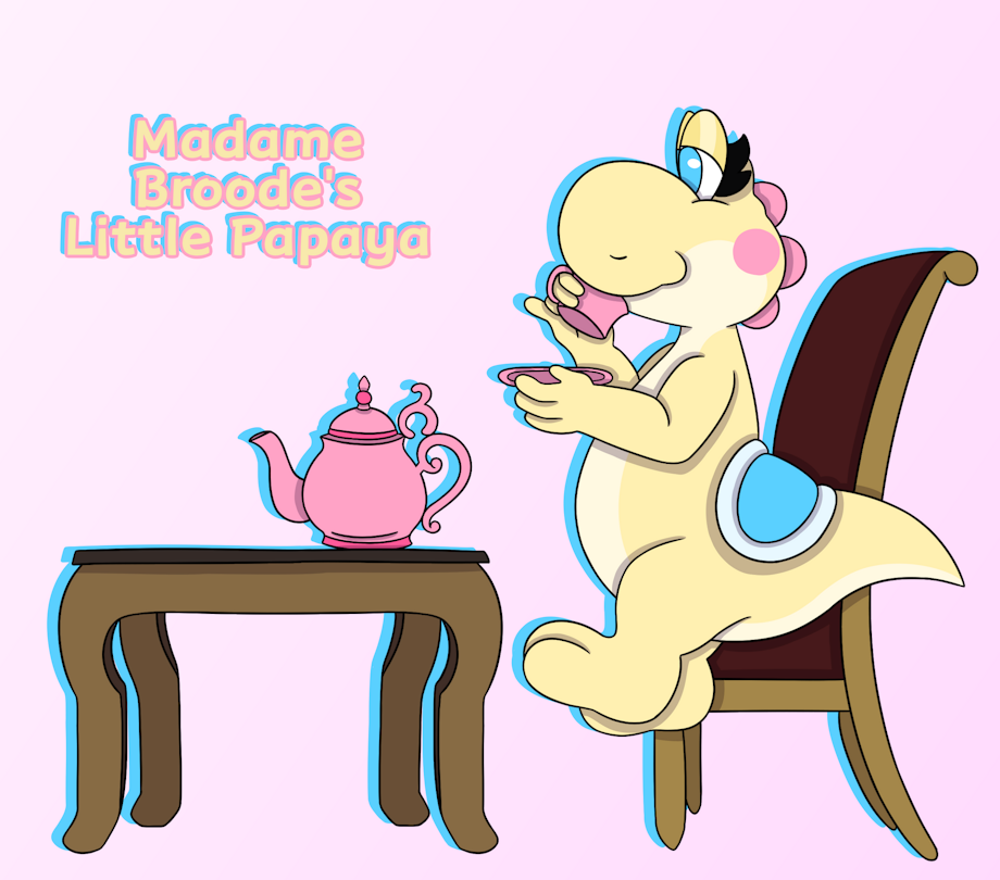 Meet Papaya, a yoshi who dresses as a particular princess. While often posh and elegant, outside the watchful gaze of her Madame she enjoys being more laid back, being far less refined in mud baths or snacking on chocolate coins, when she isn't busying herself with Madame's many tasks of course.