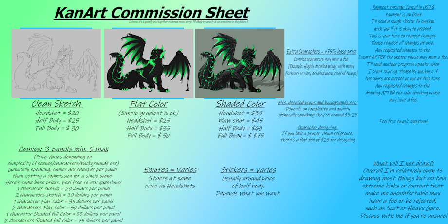 I wasn't going to make this visible yet, 'cause I was wondering if I should just scrap this and make a new one soon. But I got asked about my prices already so I'm uploading it for now! ;w; I still intend to change it in the near future.