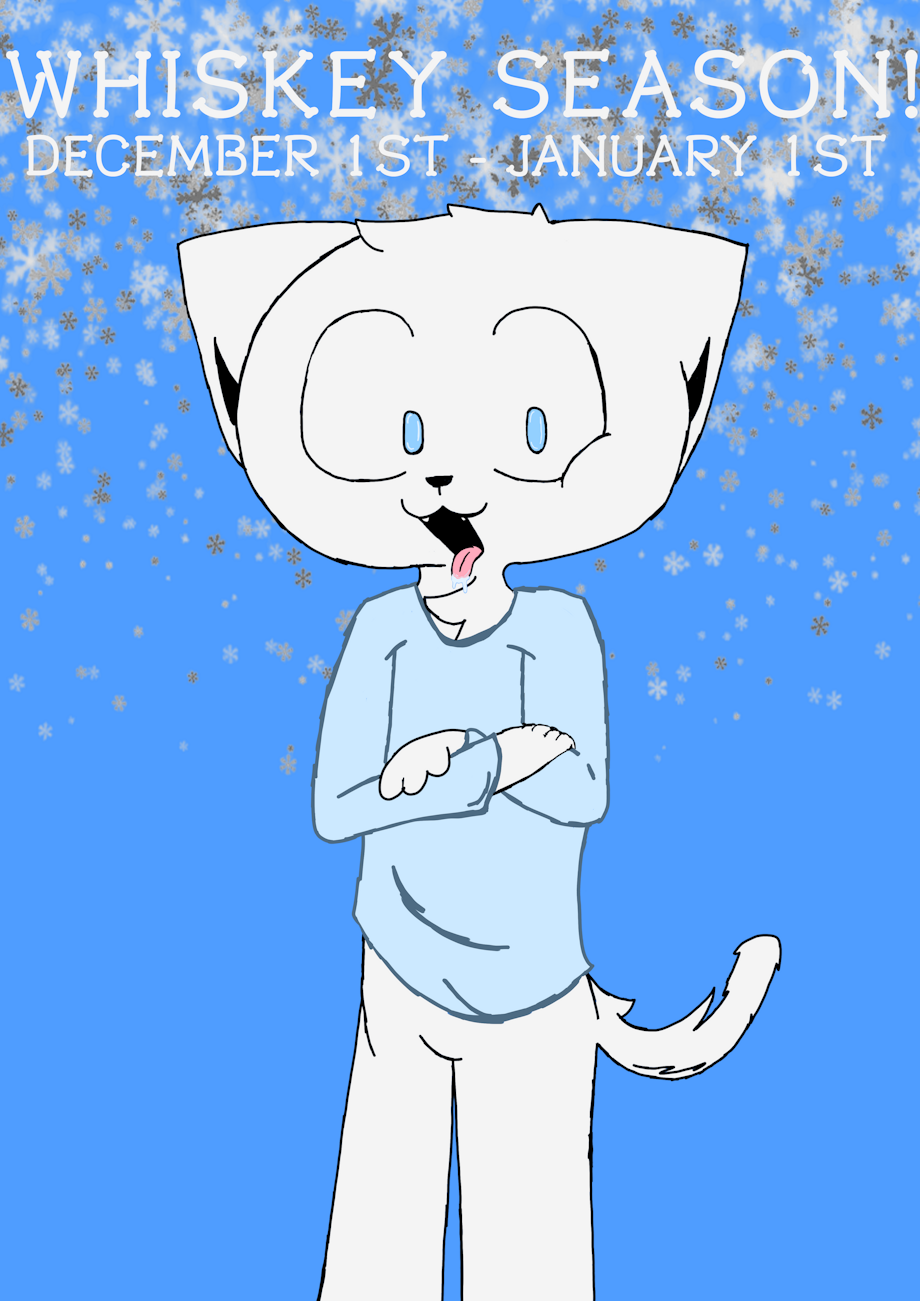- Whiskey has has white/light grey fur, with soft, slightly rounded ears.