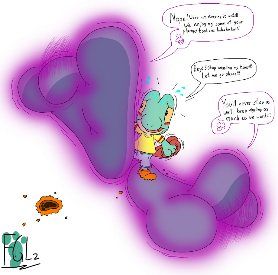and myself's collab OC Lucas The Treecko is getting a Feet-tergeist trouble!