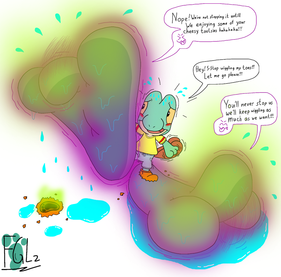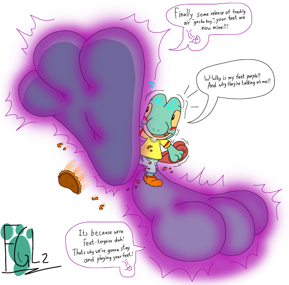 and myself's collab OC Lucas The Treecko is getting a Feet-tergeist trouble!