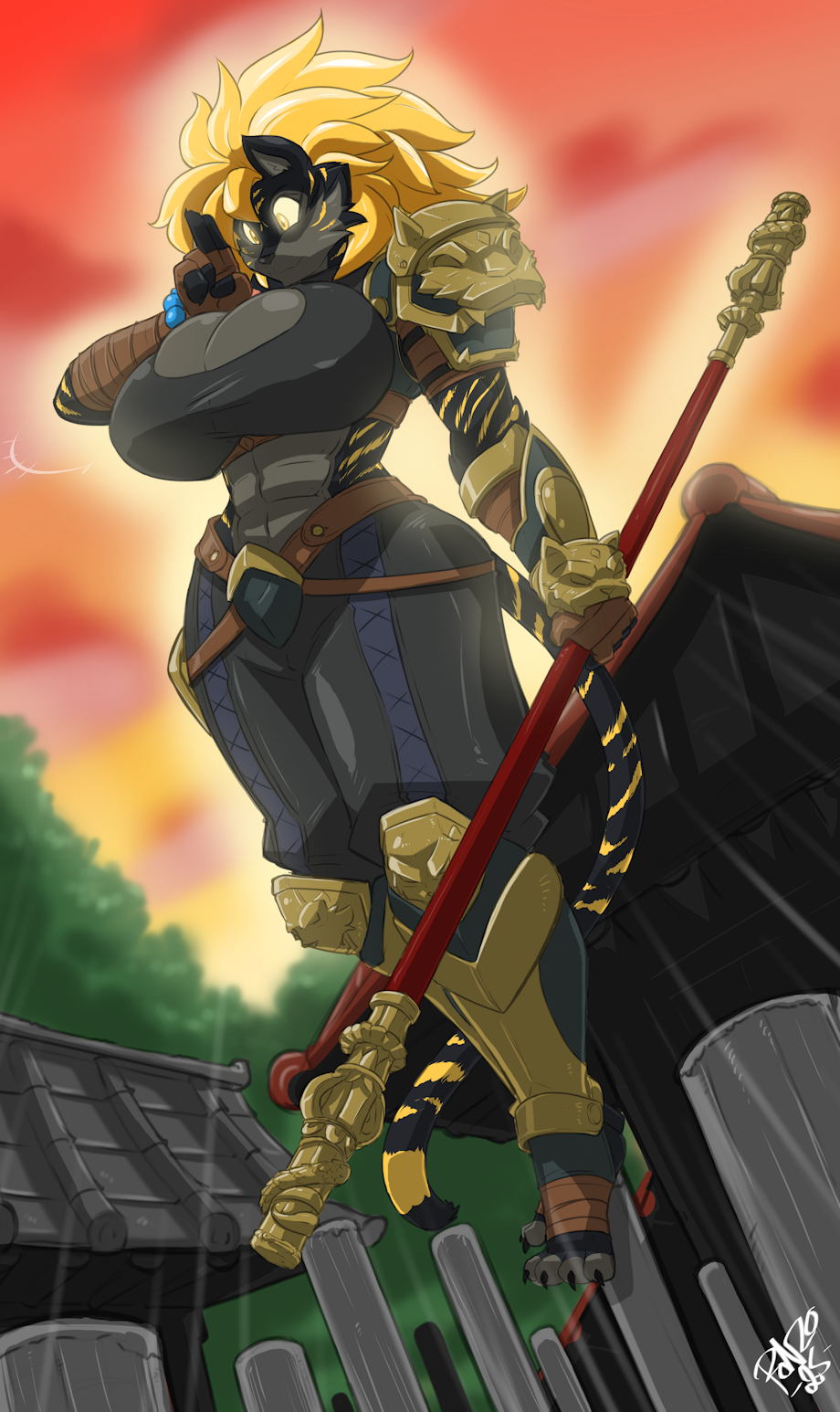 This was a fun one to put together, I knew I needed a tigress but not just any tigress, she had to stand out in some way and I stumbled upon a picture of a tiger that was black with gold stripes, and I know I found what I was looking for. Now I got to think of some cool and sexy stuff for Aiko to do. :3