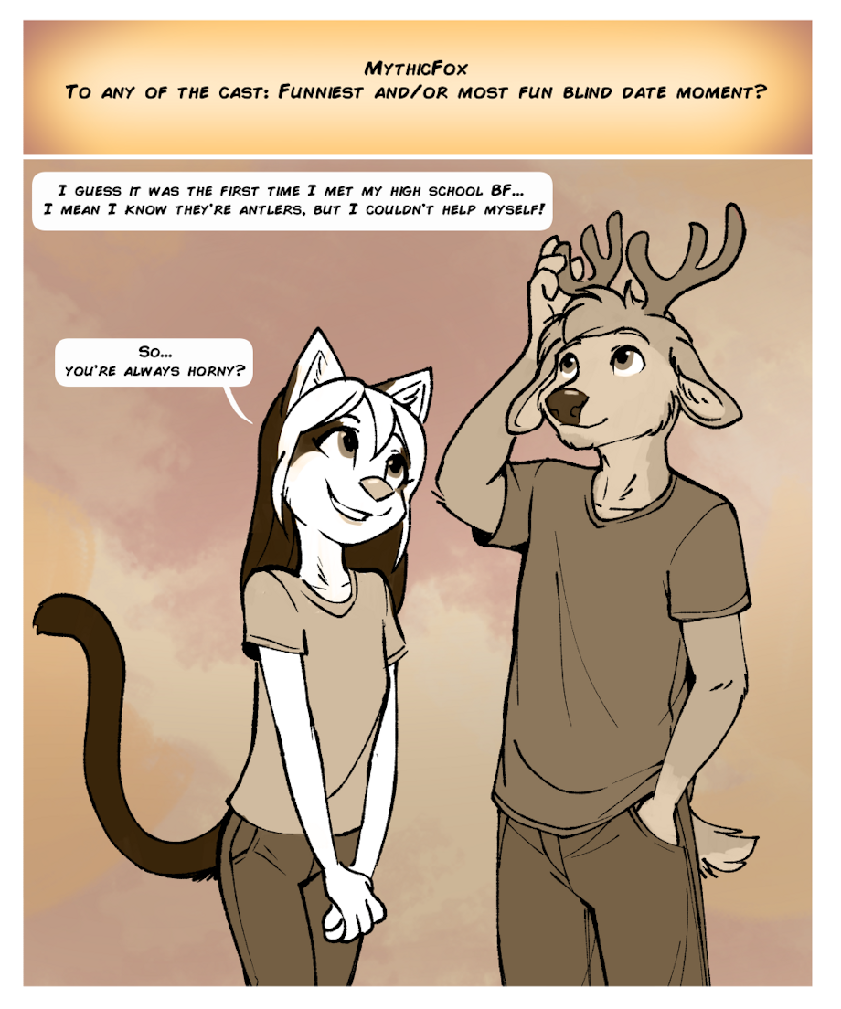 This week's Ask the the Cast by MythicFox — "To any of the cast: Funniest and/or most fun blind date moment?"