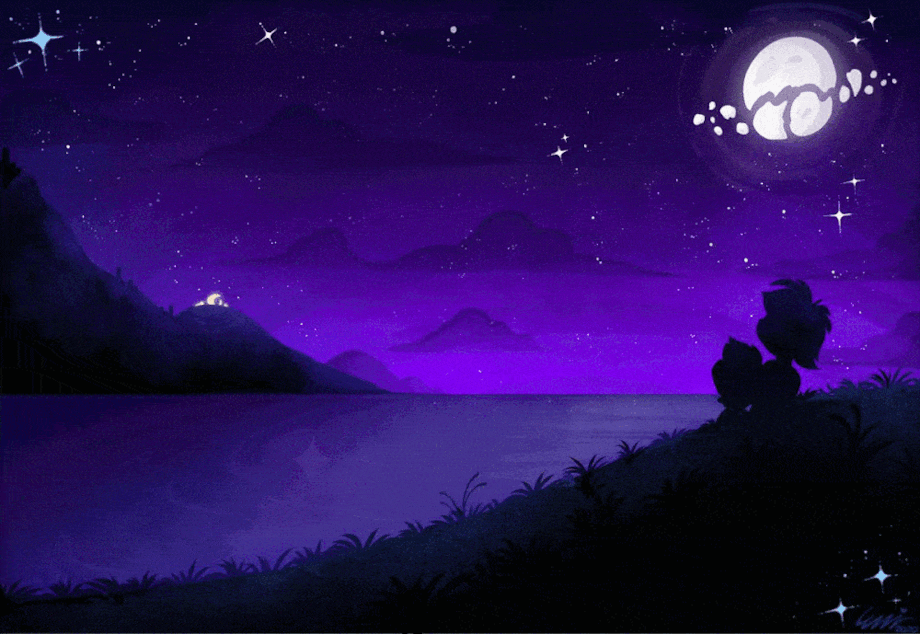 Fiber and Robert on a date watching the fireworks in the distance ♡