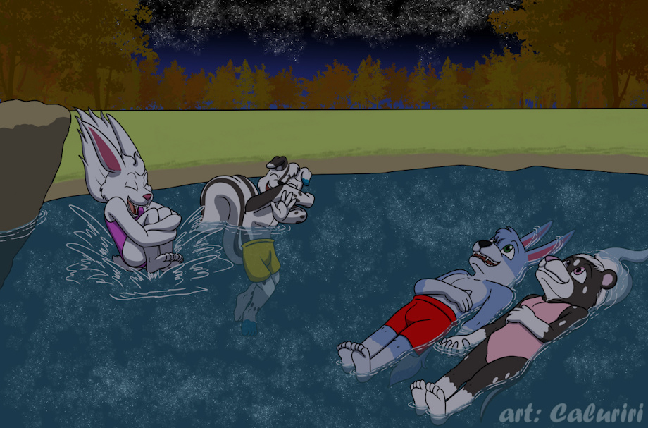 Just like Harry and Snow who are Wolf/Hare hybrids, David and Irene happen to be hybrids themselves, their father being a Dalmatian dog and their mother being a skunk. Some crazy coincidence there. The four cubs are enjoying their aquatic games and each others company.