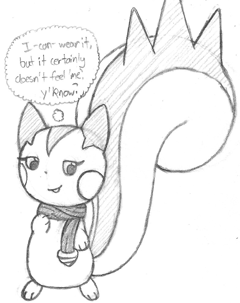 3) Been trying to figure out how to differentiate Tapi from other electric squirrels, and the first attempt involved a scarf reminiscent of her original trainer, Julie Ann. While it works... well, Tapi said it best. Er, thought it best.