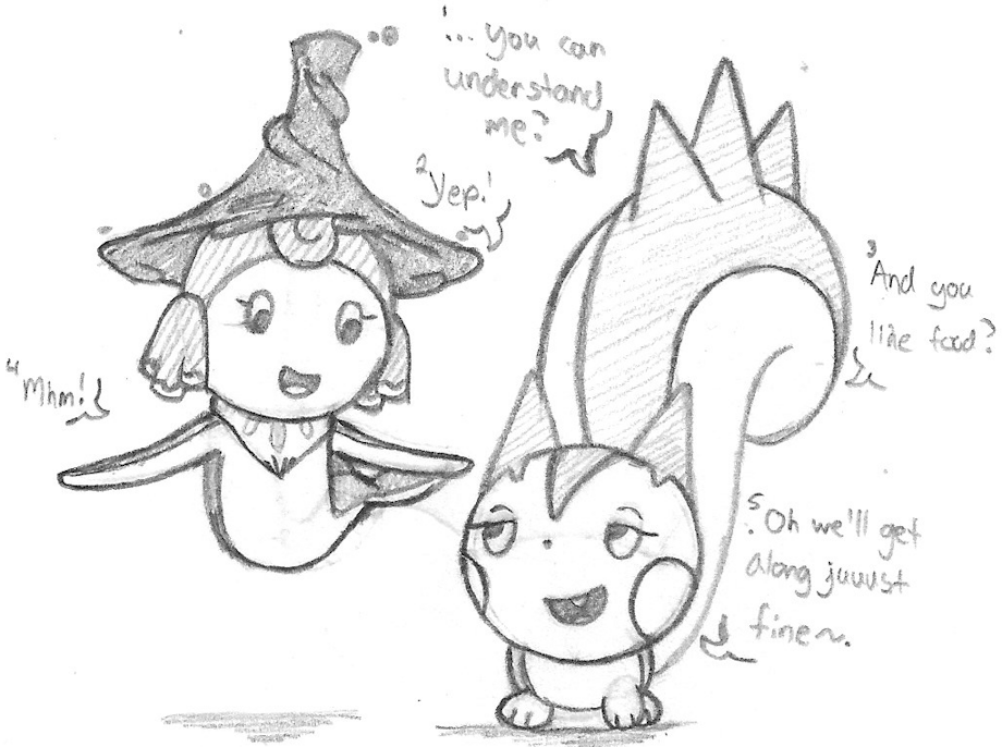5) Merlot, as a familiar, and a fae-touched one at that, can bridge the gap between some languages if she needs to. English/Common wasn't her first language, after all.