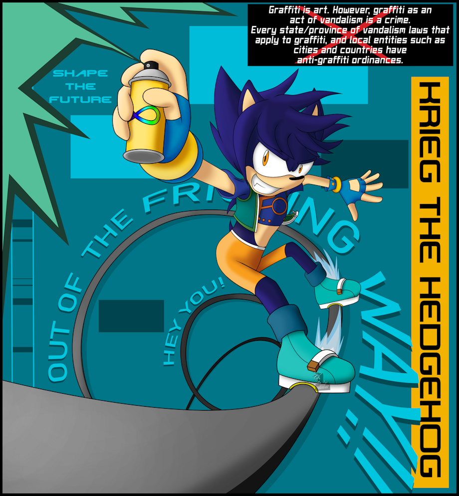 Perhaps my most greatly done pic of a male, fan OC mobian ever with a bit of style (gotta thank CSP this time for the pose, along some feedback from DC people) and JET SET RADIO FUTURE UI vibes in the background