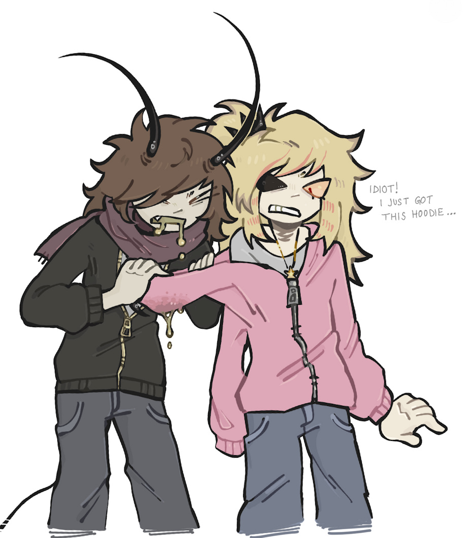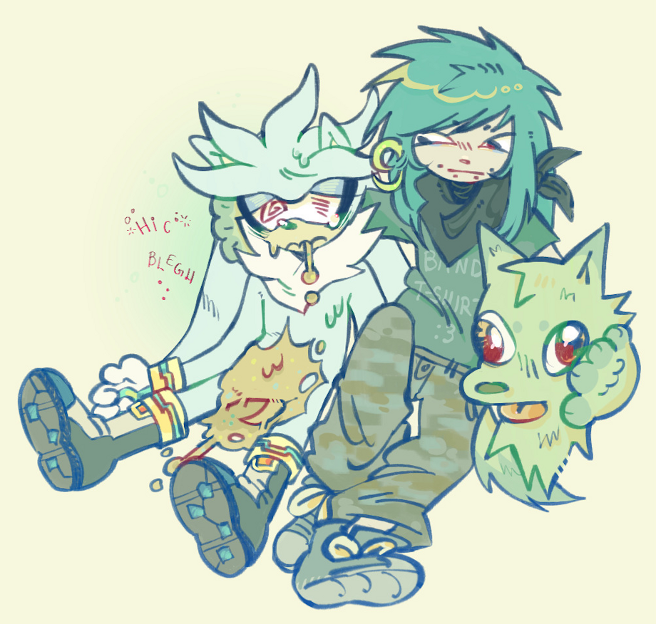 tumblr desc: friend told me a story of her puking in her friends hood in a bus, i was too lazy to draw them sitting & in a bus so just the hoodie part here lol