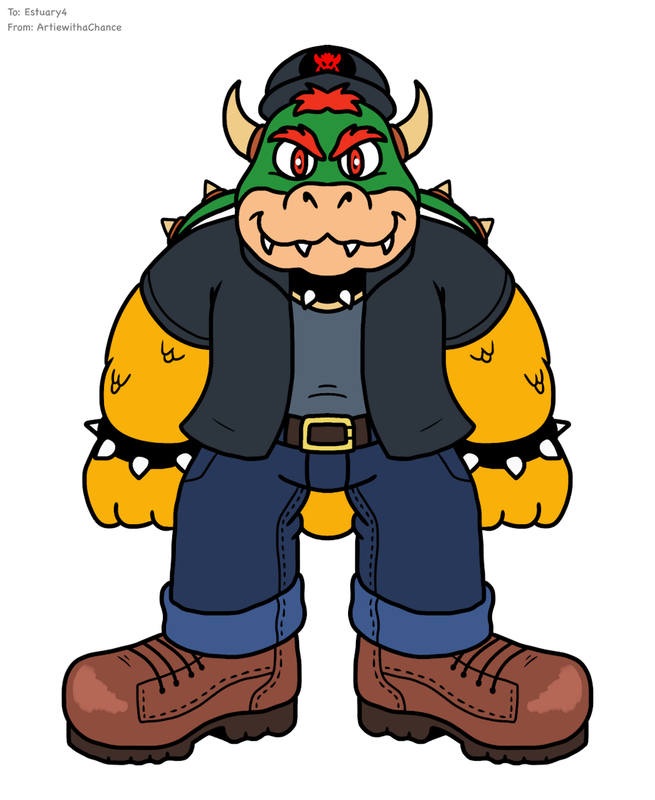 I asked the artist to do a fullbody of Bowser the trucker. Trucker Bowser was based on an AI artwork I posted on DA.
