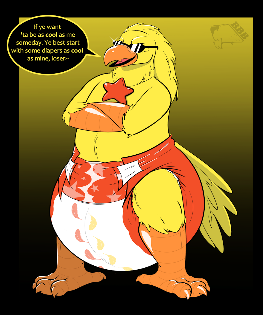 He really is the coolest chicken you'll ever meet. Wears a diaper like only a real rad guy could. You could learn a thing or two from him
