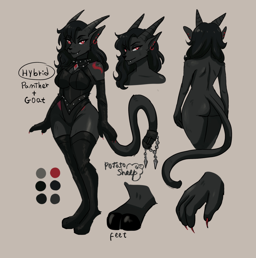 Demon-goat + panther hybrid. A dealer of forbidden relics who slithers between dimensions gathering secrets. She seduces not only for pleasure but to siphon hidden truths straight from the souls of those who fall for her 🖤 Some say she always knows what you're thinking, before you even dare think it.
