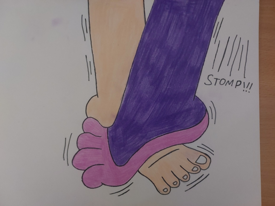 Human gir teaches Pedella to dance but Pedella keeps stepping on her feet.