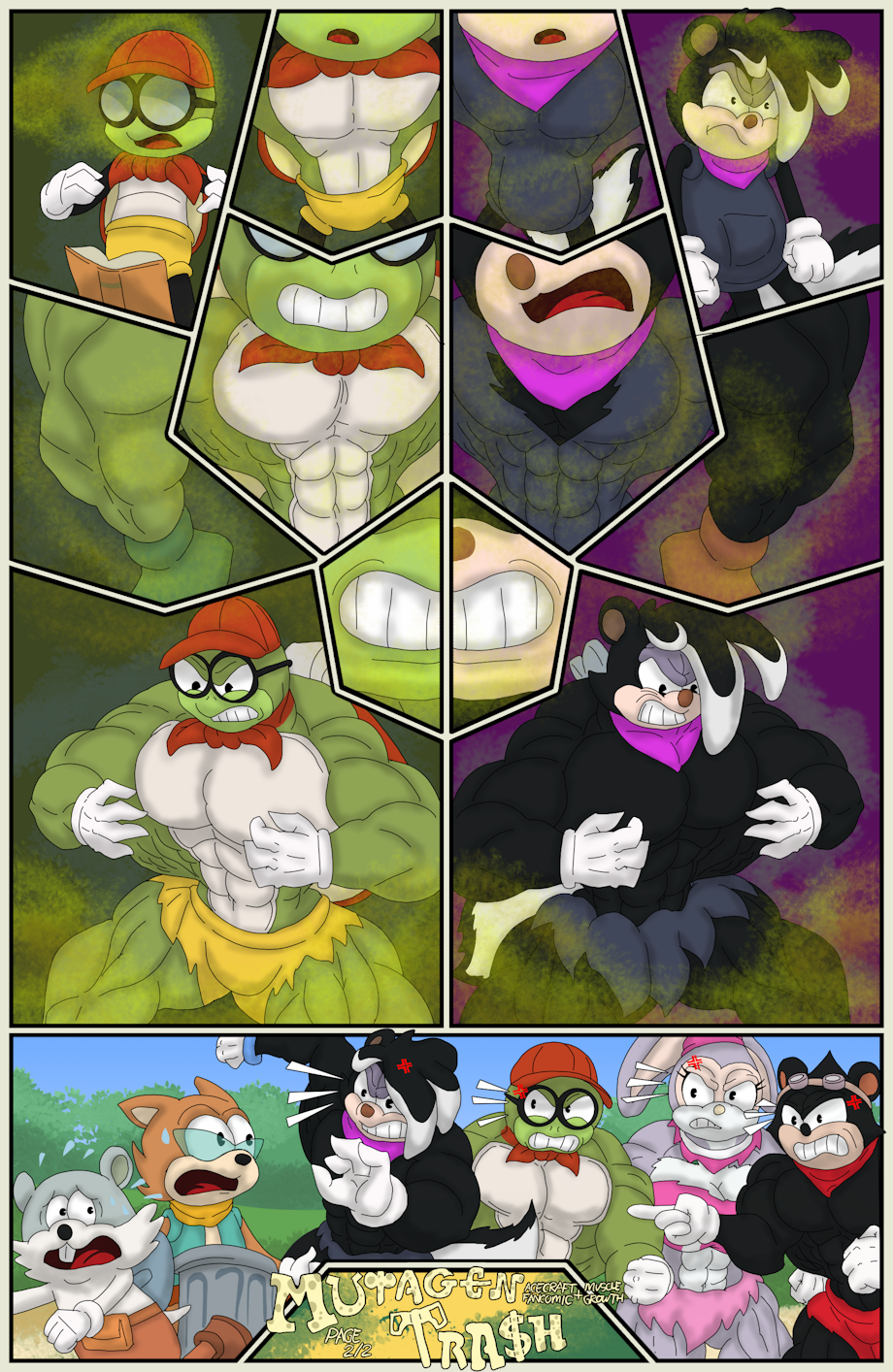 A small fancomic where four characters are accidentally sprayed with the mutagenic cheese, undergoing muscle growth against their will.
