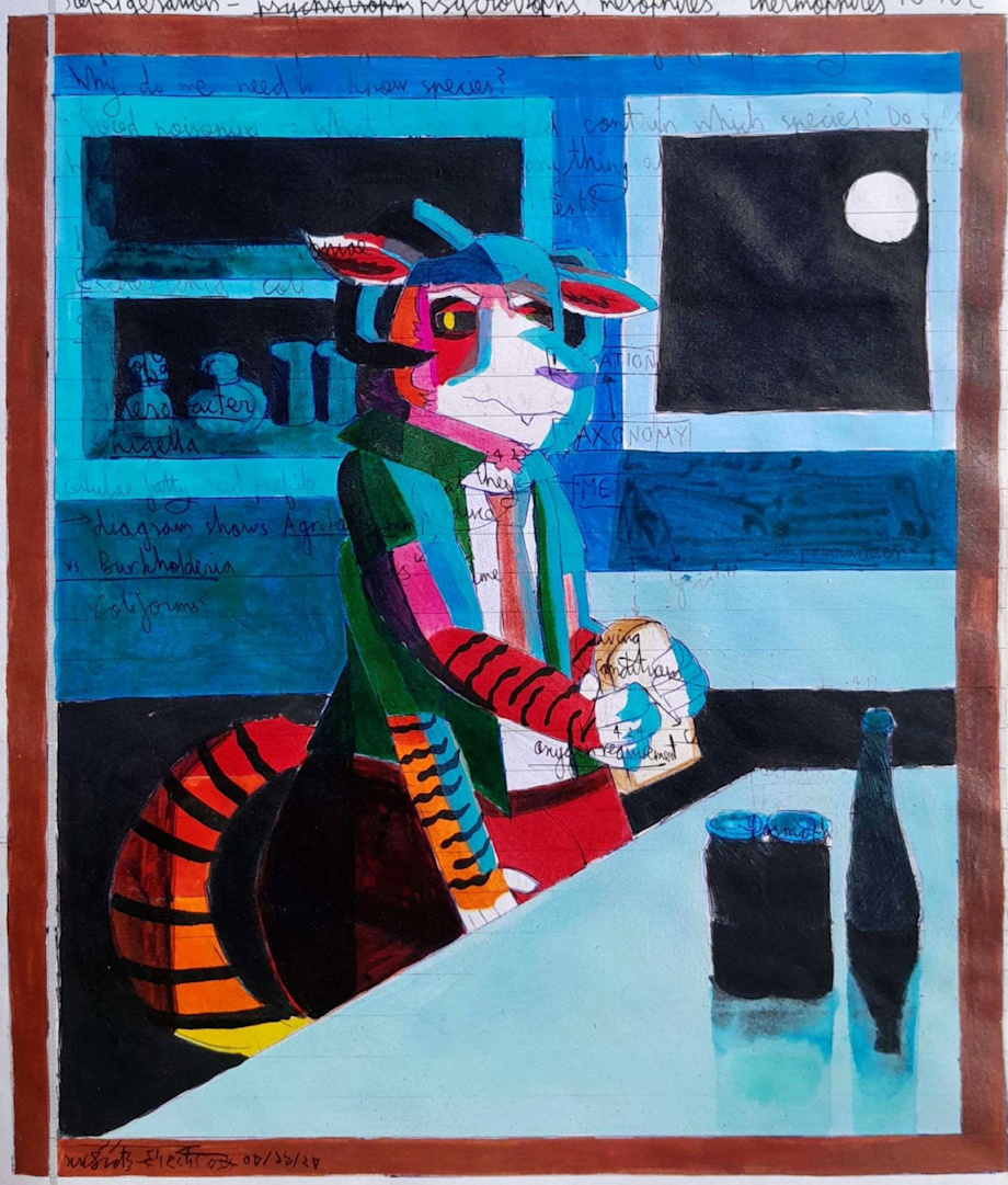[EN] Hello my husband, are you good? No? Grumpy as usual. Colouring over the shading turned out well. I like the background a lot.