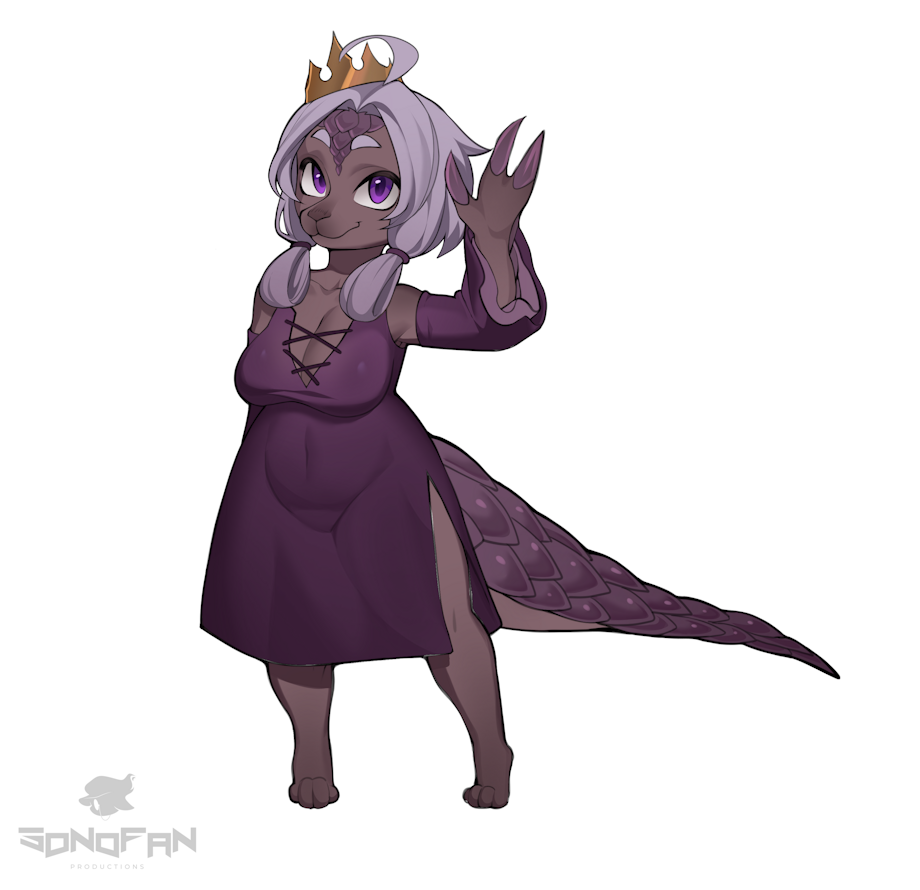 female 1,133,357, anthro 237,157, dragon 155,756, solo 116,146, tail 55,967, scalie 26,953, claws 25,213, simple background 19,579, kobold 12,843, purple eyes 5,025, brown body 3,361, crown 3,152, smiling at viewer 1,743, waving 1,248, fully clothed 737, smilling 226