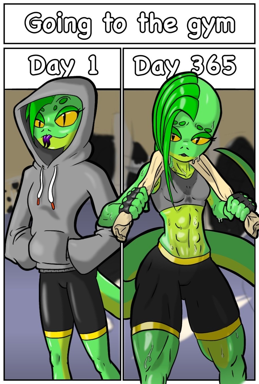 would she like some help washing up to get that sweat off? or perhaps a shower workout? or perhaps a nice protein shake